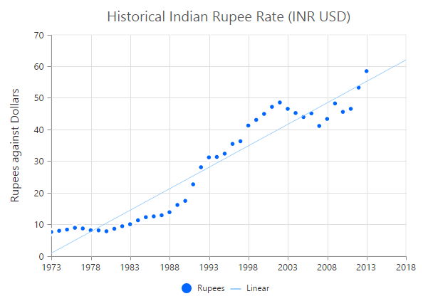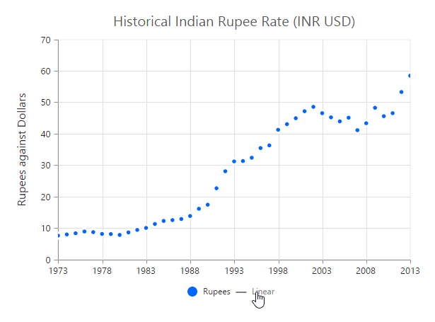 A trendline can be customized by using the properties such as Fill, Width, DashArray, and Opacity. The default type of trendline is Linear.