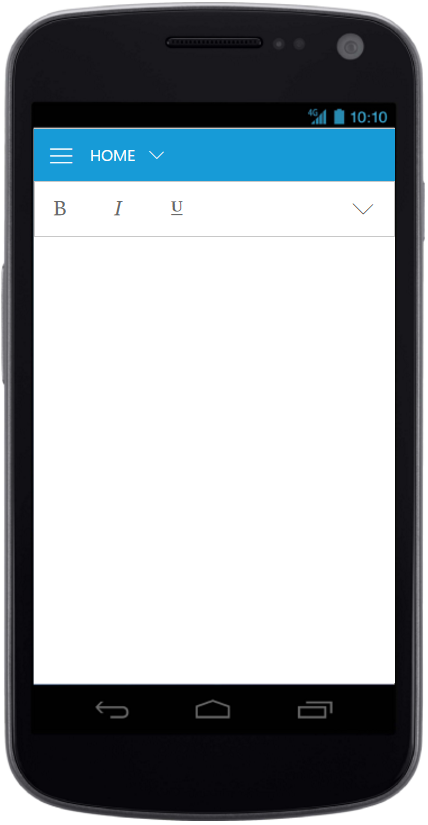 in the Mobile Toolbar of the ribbon. For each tab , first row of mobile ribbon will pick and display the controls which is set as IsMobileOnly with look adapt to mobile mode.If IsMobileOnly property is not defined to any of the control within tab, then by default fist group content will be displayed in first row toolbar.