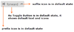 @Html.EJ().ToggleButton("toggleButton_iconsAndStates").ContentType(ContentType.ImageTextImage).ShowRoundedCorner(true).DefaultText("forward").ActiveText("backward").DefaultPrefixIcon("e-icon e-mediaforward").ActivePrefixIcon("e-icon e-mediaback").DefaultSuffixIcon("e-icon e-redo").ActiveSuffixIcon("e-icon e-undo")Execute the above code to render the following output.