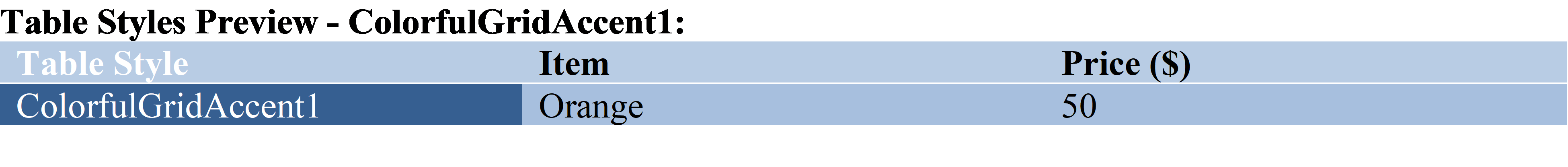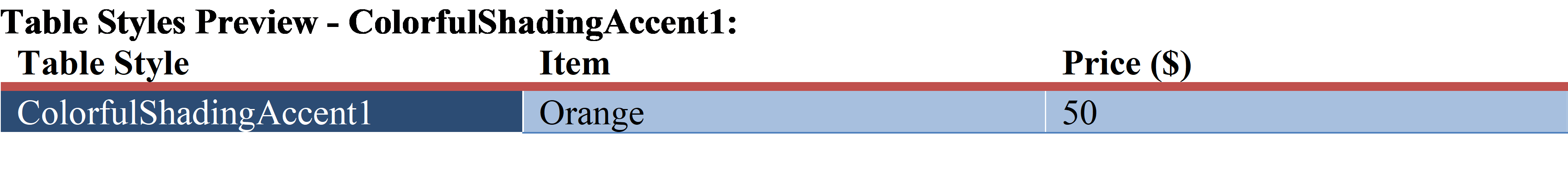 public const BuiltinTableStyle ColorfulShadingAccent1