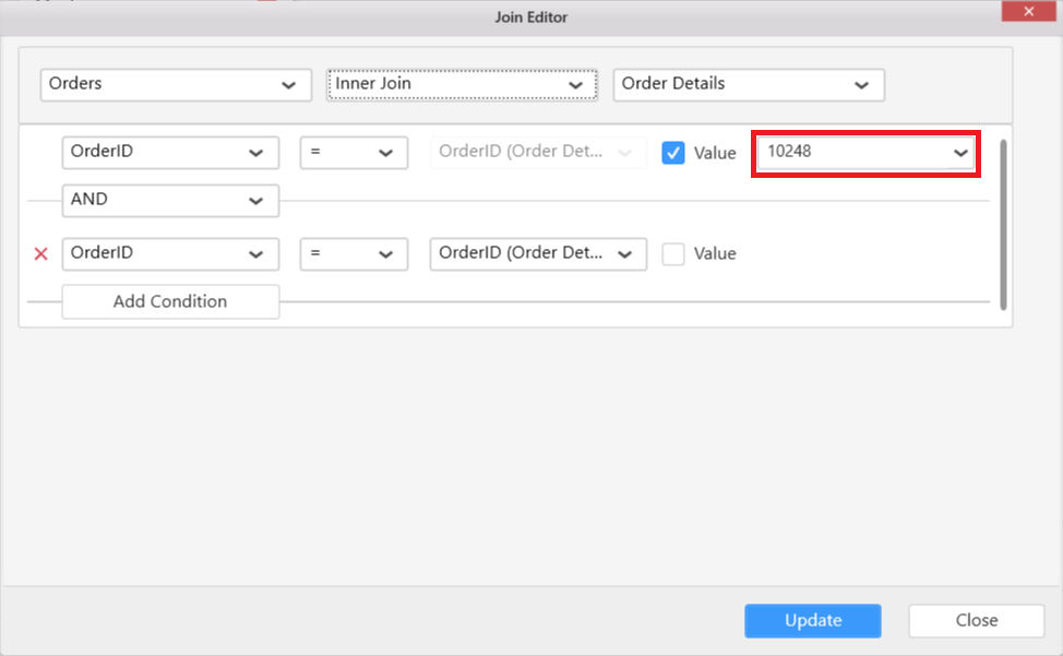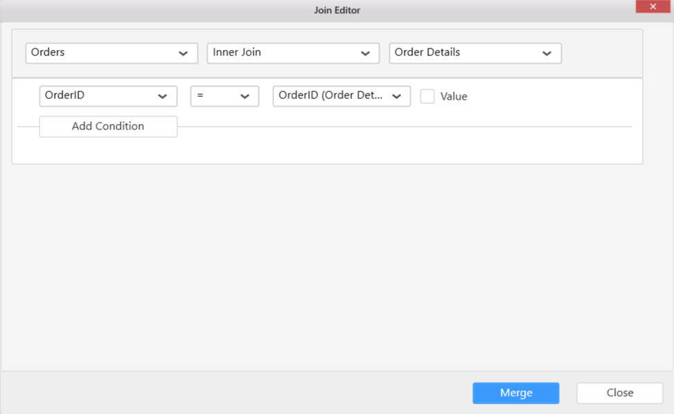 Click Close to close the join editor.