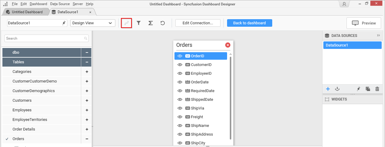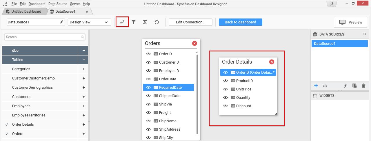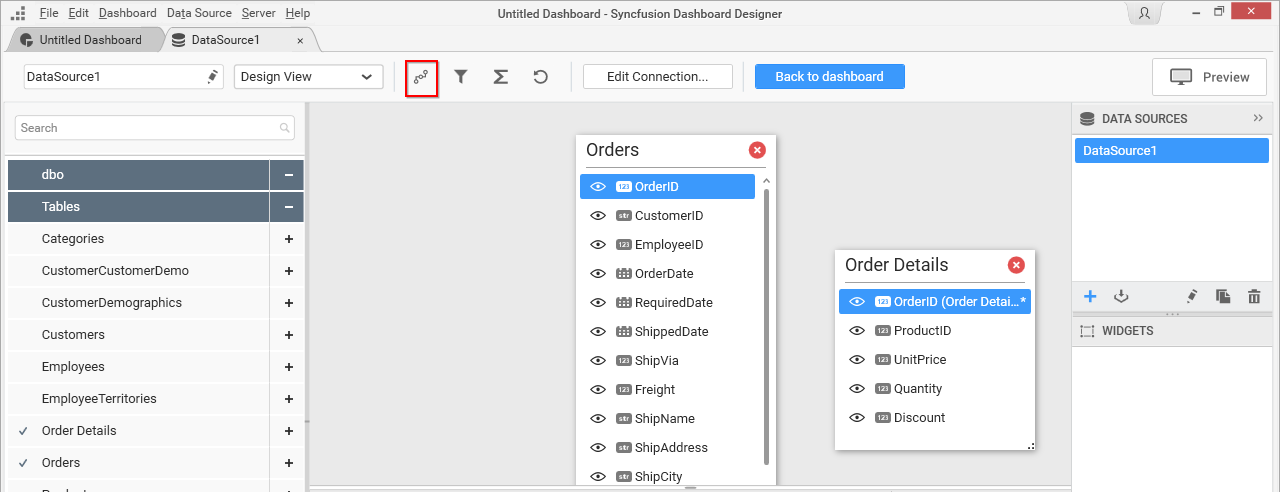 Joining of tables is required when you are going to use more than one table in your data source design. The join icon (highlighted below) in the tools pane at data design view will be in disabled state, if there was only one table found dropped in table design view like below: