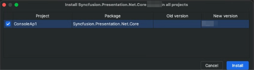 Step 2: To create a Word document in console app, install Syncfusion.Presentation.Net.Core to the project.