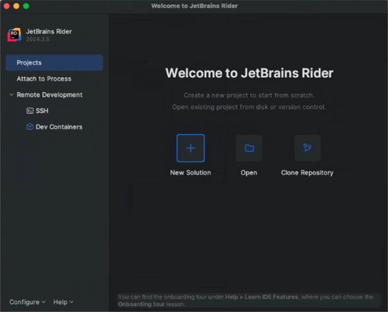 - Launch JetBrains Rider.