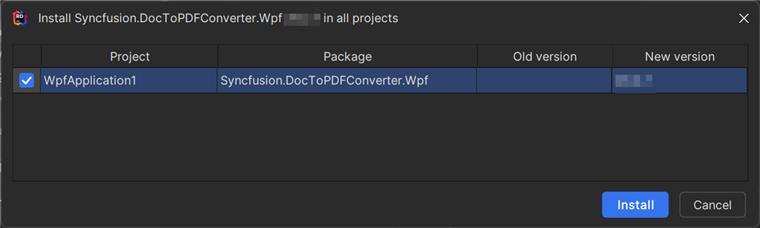 - Select the latest Syncfusion.DocToPdfConverter.Wpf NuGet package from the list.