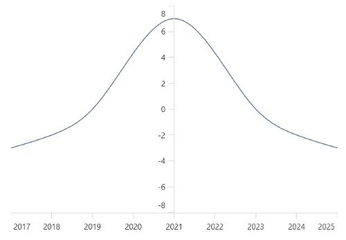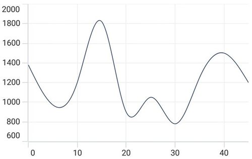 Axis interval can be customized by using the Interval property. By default, interval will be calculated based on the minimum and maximum value of the provided data.