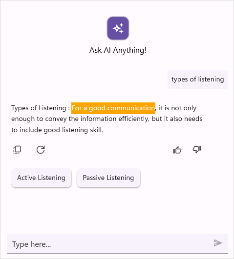| SfAIAssistViewSelectionTextHighLightColor | Color to highlight the selected text. |