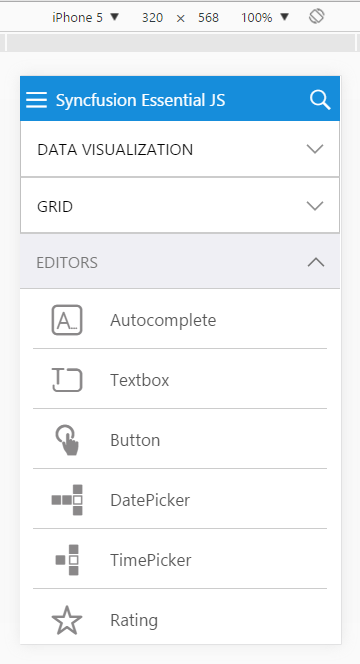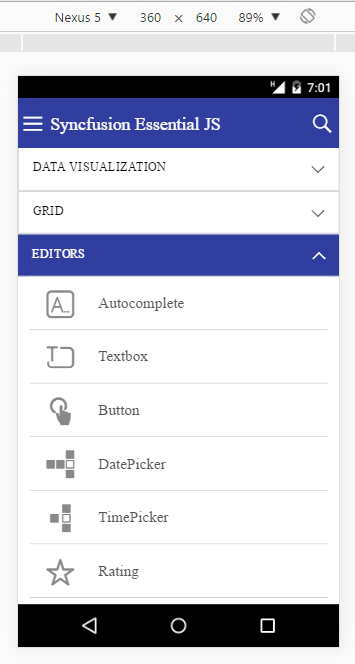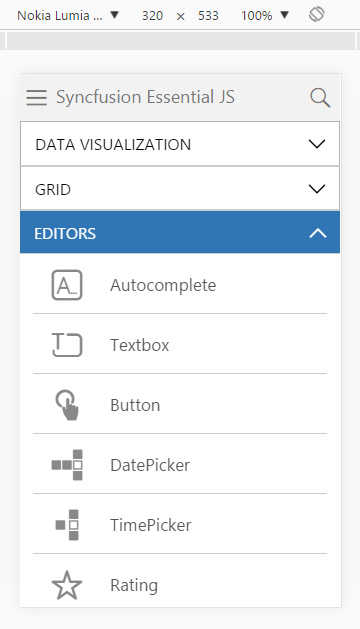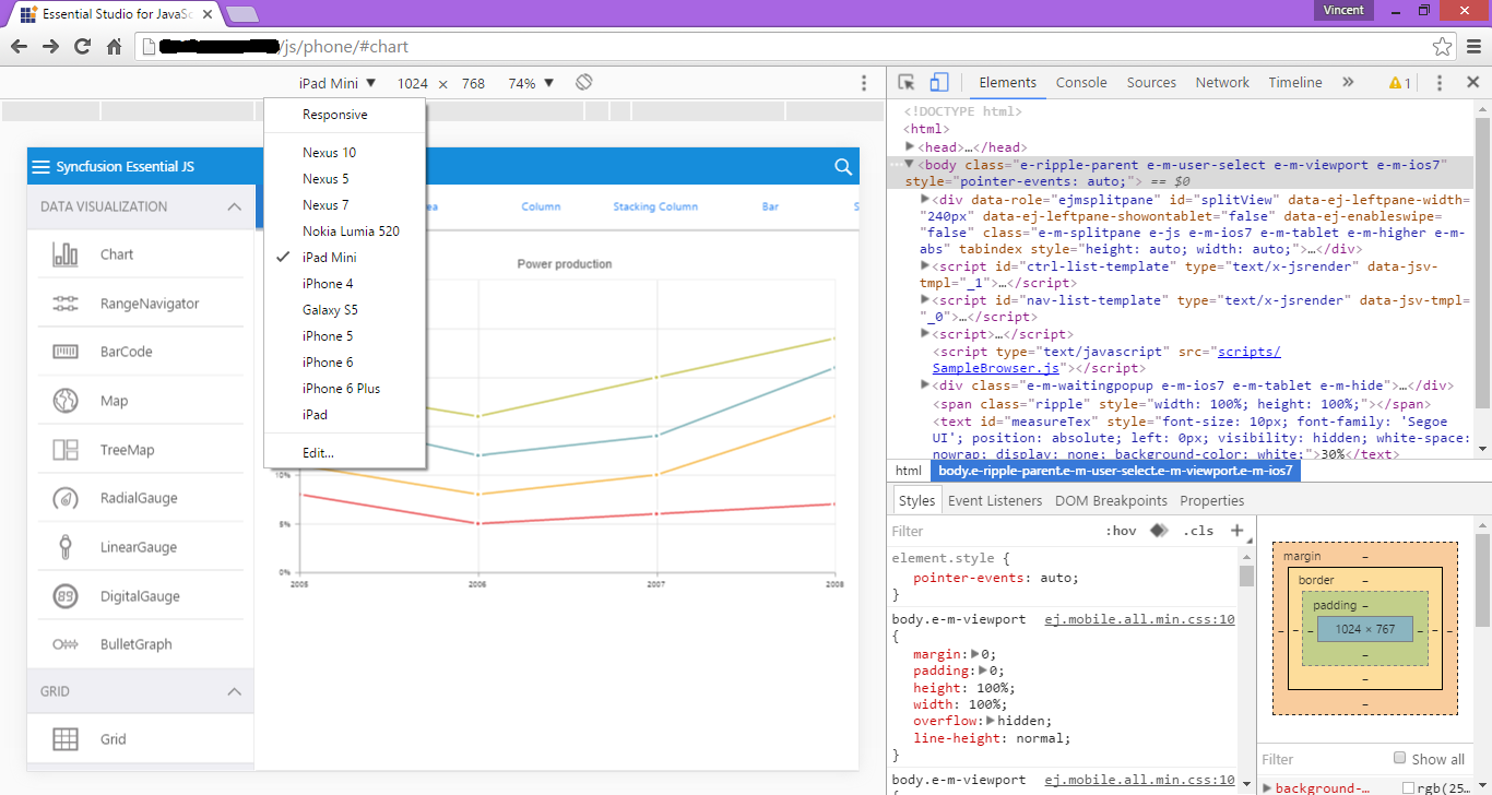 You can select different devices from the dropdown list to emulate mobile applications. Refer to the following screenshots where mobile applications are
