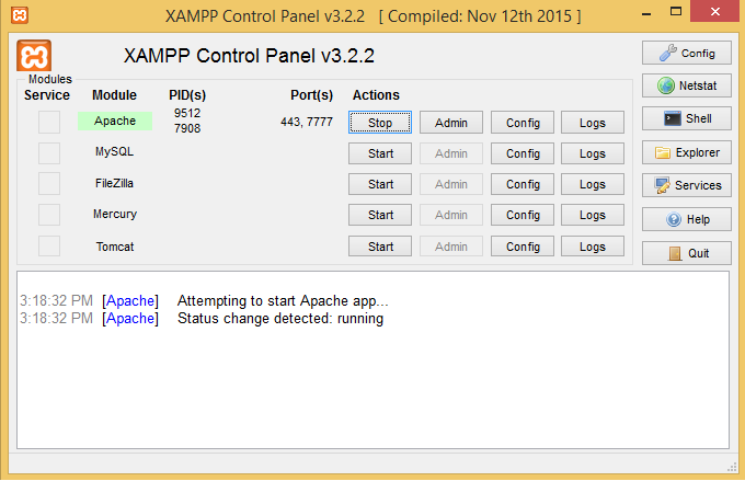 In case, if you face any problem with default port 80 while running your sample, make the Apache to listen on some other different ports. The port number changes needs to be done on both the
