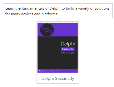 echo $tooltip1->width('200px')->height('100px')->content('Learn the fundamentals of Delphi to build a variety of solutions for many devices and platforms.')->title('Delphi Succintly')->closeMode('sticky')->isBalloon(false)->render();