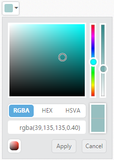 The ColorPicker control allows you to change the opacity value by using the opacityValue property. The selected color opacity is adjusted by using the opacityValue.