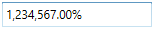 <syncfusion:PercentTextBox x:Name="percentTextBox" Height="25" Width="150" Culture="en-US" PercentValue="1234567"/>PercentTextBox percentTextBox = new PercentTextBox();