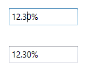 <syncfusion:PercentTextBox x:Name="percentTextBox" Width="150" Height="25" PercentValue="8"