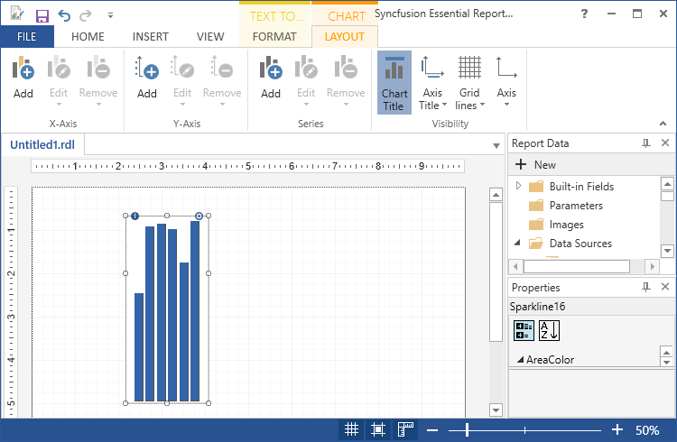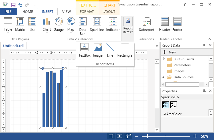To Add the Report Items such as text boxes, lines, and images and rectangle to the sparkline,click and drag the selected report items to the sparkline.