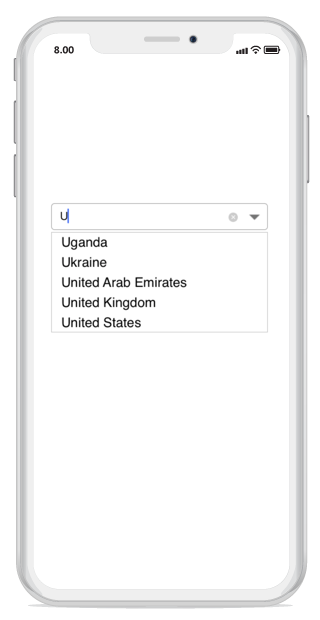 The combo box enables filer option for filtering the suggestions in the drop-down.